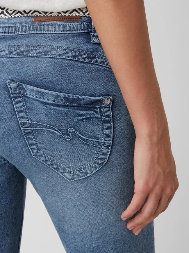 Die Jeans von Blue Monkey ist aus einer Baumwollmischung mit Viskose- und Stretch-Anteil gefertigt. Sie kommt in schmaler Passform mit verkürztem Bein und Label-Patch. Warum wir diese Passform mögen? Sie betont schmale Fesseln und kaschiert kräftige Oberschenkel.