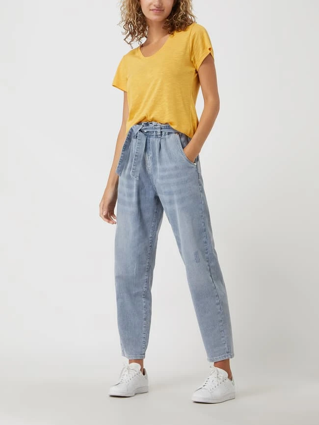 Die Paperbag-Hose von Blue Monkey ist aus einer Baumwollmischung mit Viskose- und Stretch-Anteil gefertigt. Sie kommt in lockerer Passform mit hohem, elastischem Bund und Gürtel zum Binden. Was wir mögen? Paperbag-Hosen kaschieren kräftige Oberschenkel und eine breite Hüftpartie.