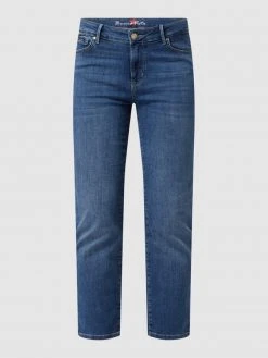 Die Jeans von Cambio ist aus einem Baumwoll-Mix mit Stretch-Anteil gefertigt und im Straight Fit gehalten. Sie zeigt sich mit Besatz in Flecht-Optik sowie Knopf- und Reißverschluss.