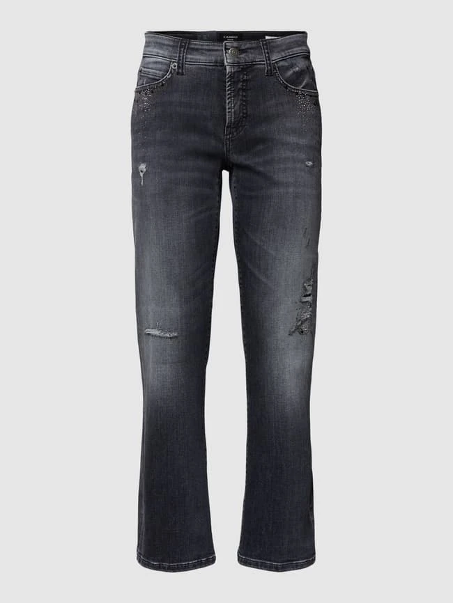 Die Jeans von Cambio ist aus einem Baumwoll-Mix mit Stretch-Anteil gefertigt und im Slim Fit gehalten. Sie zeigt sich im Destroyed-Look sowie mit Ziersteinbesatz und Label-Patch.
