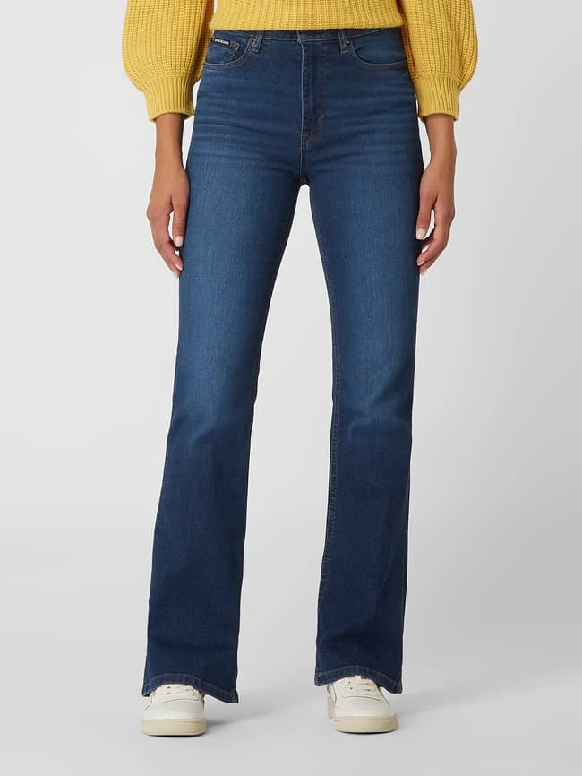 Die Jeans von DKNY Jeans ist aus einer Baumwollmischung mit Viskose- und Stretch-Anteil gefertigt. Sie zeigt sich im Slim Fit mit hohem Bund, ausgestelltem Bein und Label-Patch. Warum wir diese Passform mögen? Flared Jeans betonen die Oberschenkel und strecken das Bein.