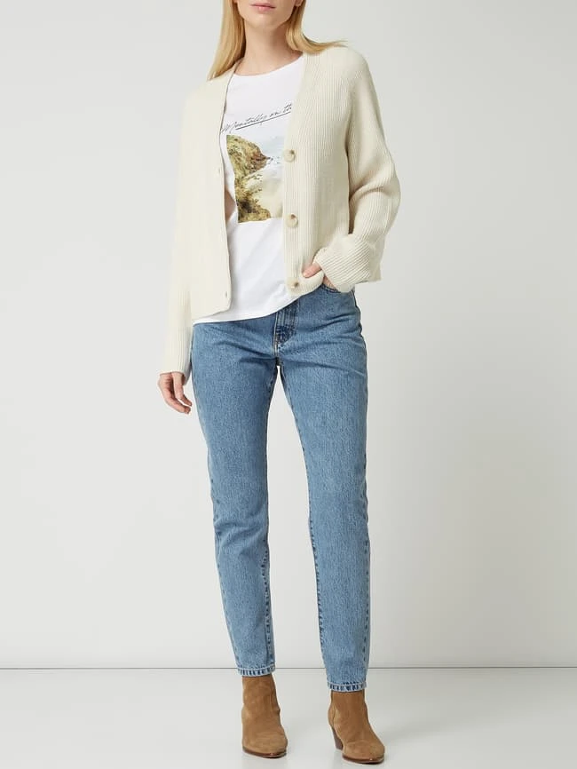 Die Jeans von Dr. Denim ist aus reiner Bio-Baumwolle gefertigt und im Mom Fit gehalten. Sie kommt mit Reißverschluss und Label-Patch. Gut zu wissen: High Waist Hosen betonen die Taille und kaschieren den Bauch.