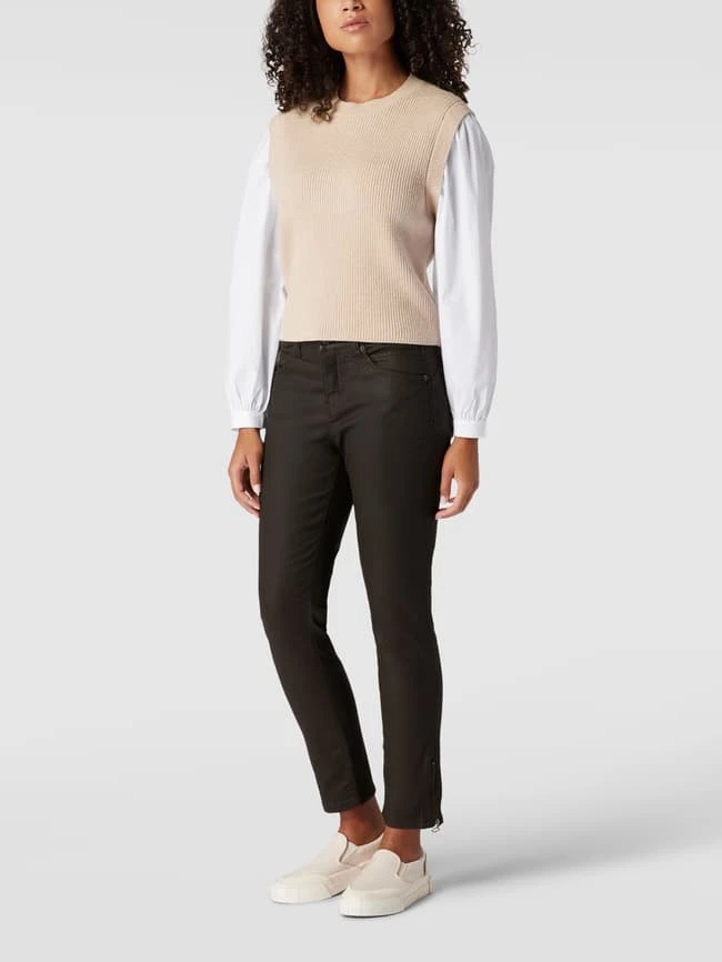 Die Hose von MAC ist aus einem elastischen Baumwoll-Lyocell-Mix gefertigt und im Slim Fit gehalten. Sie zeigt sich in Leder-Optik mit Eingrifftaschen.