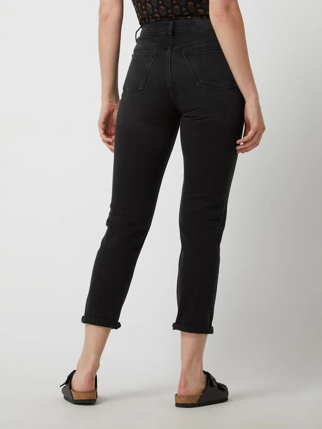 Die Jeans von MANGO ist aus einer Baumwollmischung mit Stretch-Anteil gefertigt. Sie kommt im Mom Fit mit verkürztem Bein und Label-Patch. Gut zu wissen: High Waist Hosen betonen die Taille und kaschieren den Bauch.