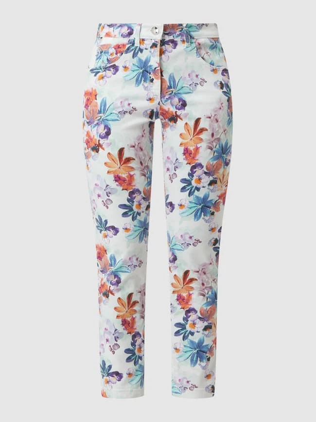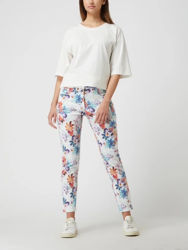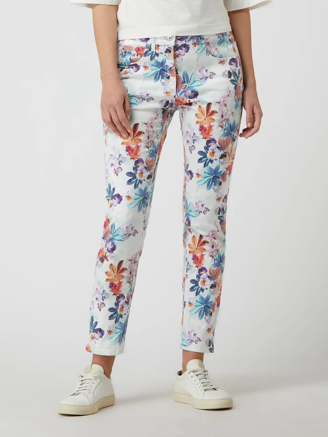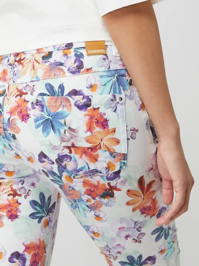Die Jeans von ZERRES ist aus einer Lyocellmischung mit Baumwoll- und Stretch-Anteil gefertigt. Sie zeigt sich im Slim Fit mit floralem Muster und Eingrifftaschen. Was wir an Slim Fit Jeans mögen? Sie sind nicht ganz so eng geschnitten wie Skinny Fit Jeans, entsprechen aber immer noch einer figurbetonten Passform.